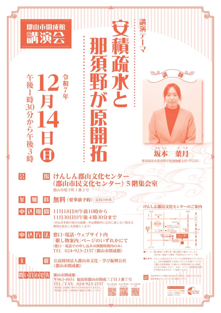 11月30日まで、郡山市開成館講演会の参加申込を受付しています。