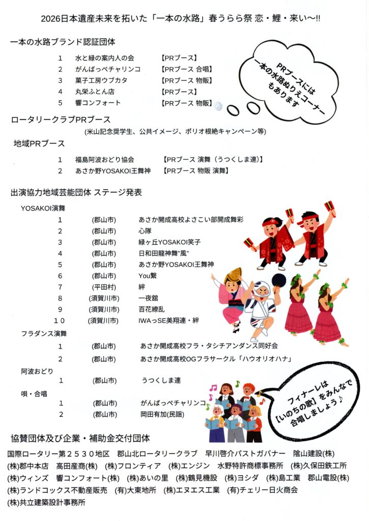 「未来を拓いた「一本の水路」春うらら祭 ~恋・鯉・来い~」