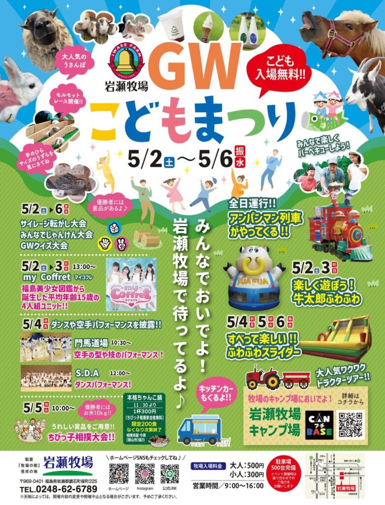 岩瀬牧場では、GWこどもまつりを開催します!お子様の入場料は無料!