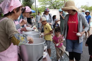 田植えの後の豚汁・おにぎりは最高においしかったです♪