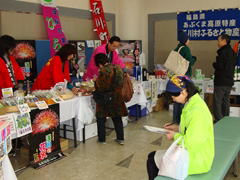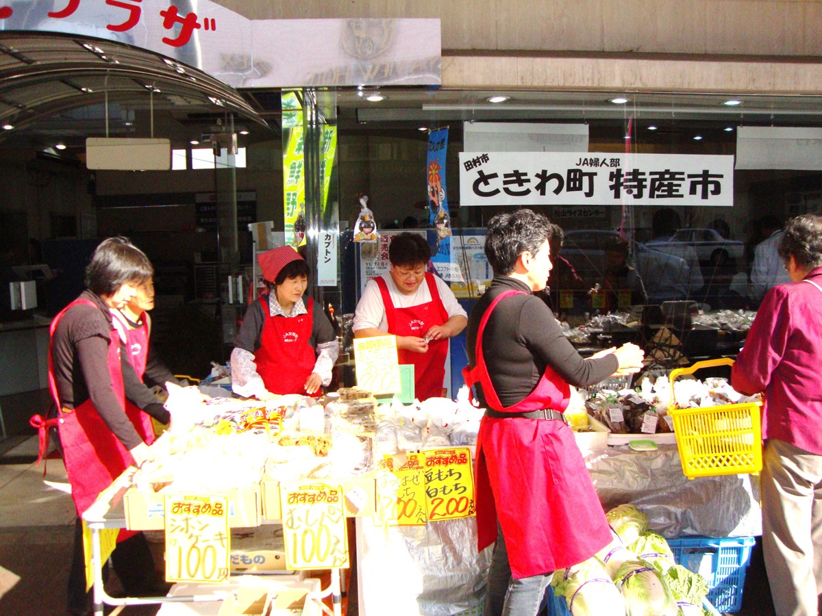 さらに今回、常葉町JA婦人部の方々による特産市が行われました。みなさんが丹精こめてつくった新鮮なお野菜、自家製漬物、お餅などの販売をとおして、常葉町の特産品をPRしてくださいました。何よりおばちゃんたちの明るさと元気のよさに脱帽です。その元気なかけ声と笑顔につい足をとめて、購入なさった方も多いのでは?と思うぐらいでした。